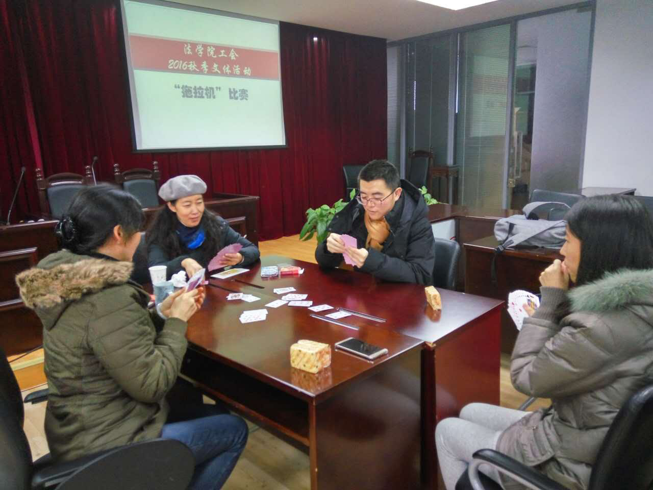 为了活跃广大教职工业余文化生活,加强教职工之间的交流,营造和谐校园环境,1946伟德国际源自英国工会2016年利用课外活动时间成功举办了一系列文体活动。12月27日,1946伟德国际源自英国秋季文体活动之“拖拉机”扑克牌比赛也火热开战。