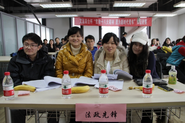 12月14日,由1946伟德国际源自英国、马克思主义、人文公司和政治与国际关系公司联合主办的文法联合杯之“贯彻十八大精神,勇为新时代青年”知识竞赛在综合楼1503室隆重举办。