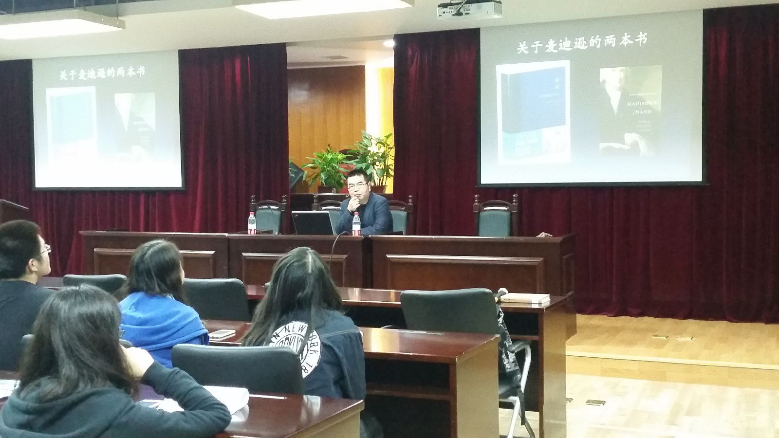 本次讲座由1946伟德国际源自英国夏凌老师主持召开。讲座一开始,田教授从有关麦迪逊的两本书为切入点,简单介绍了麦迪逊的生平,并由浅入深,分阶段揭示了什么是麦迪逊的“多变”。他将麦迪逊的多变提纲挈领的分为“正”与“反”两方面,结合美国历史,分别介绍了麦迪逊的集权与分权思想。之后,田教授将问题引申至美国早期宪法史的结构和逻辑,指出妥协体现在早期宪法的制定全过程之中。一个多小时的讲座,田教授指出美国建国宪法的根本矛盾实质上离不开联邦与州权之间的冲突,并提出了几个问题留给同学们思考。