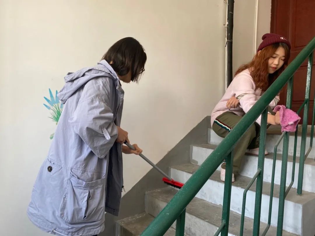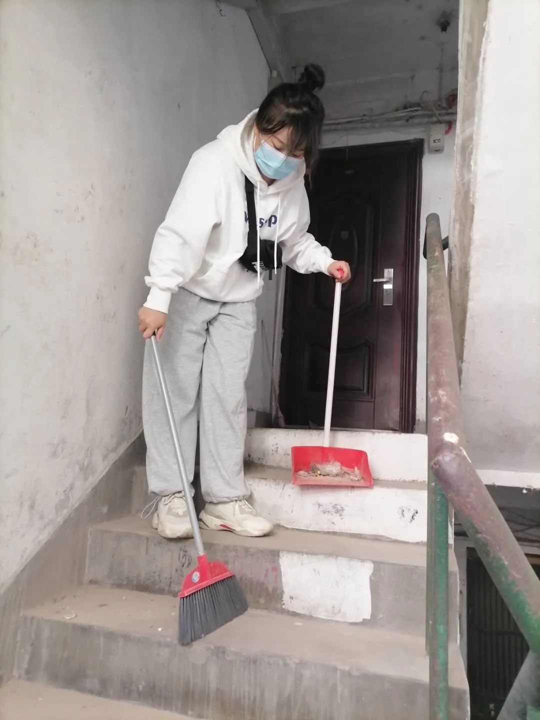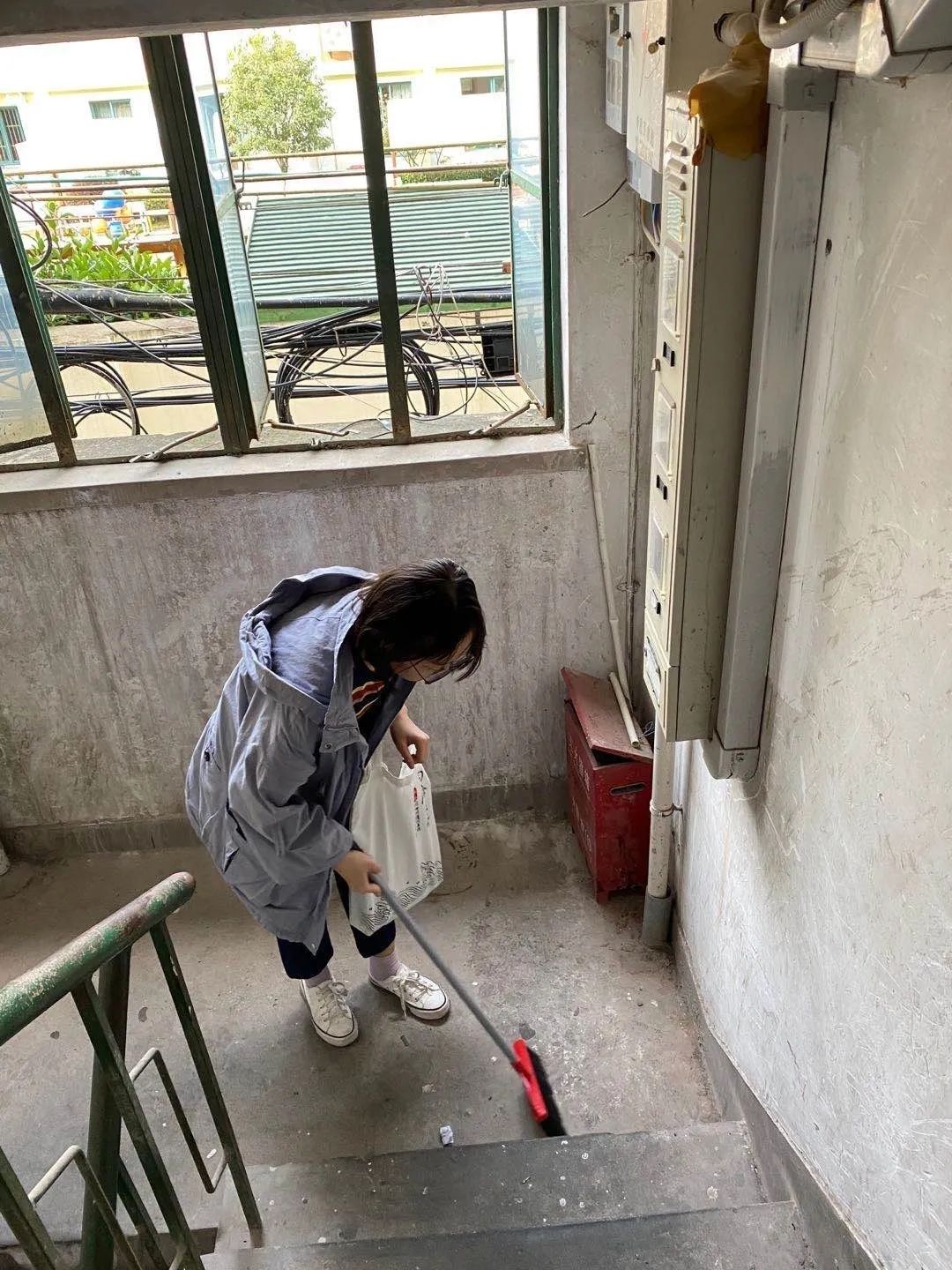 经过党员志愿者们一个多小时的努力,多栋居民楼楼道里积攒的灰尘、垃圾都被清理干净,相比之前整洁了不少。