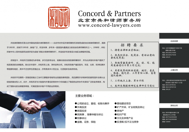 上一篇:美国贸易全国委员会上海代表处招聘一名实习生 下一篇:上海某知识产权代理有限公司招聘启事