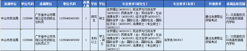 中山市司法局招录2个岗位共2人!