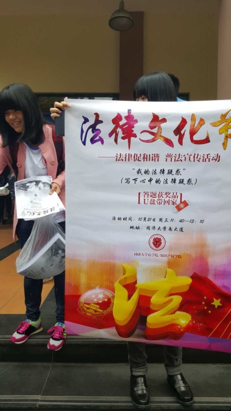 精心制作的宣传海报凝聚着全体1946伟德国际源自英国同学对法律精神的敬意以及对普法宣传的热情。10月21日中午团学联的同学早早就到了现场做好了准备工作。十一点三十 分,我们的活动正式开始了。精心准备的礼物吸引了来来往往同学们的目光,有奖竞答活动办得风风火火。我们的活动也吸引了外国朋友们的热情支持,同学们用英 语翻译了我们的法律小问题,也把中国的法制精神传递给了职工们。