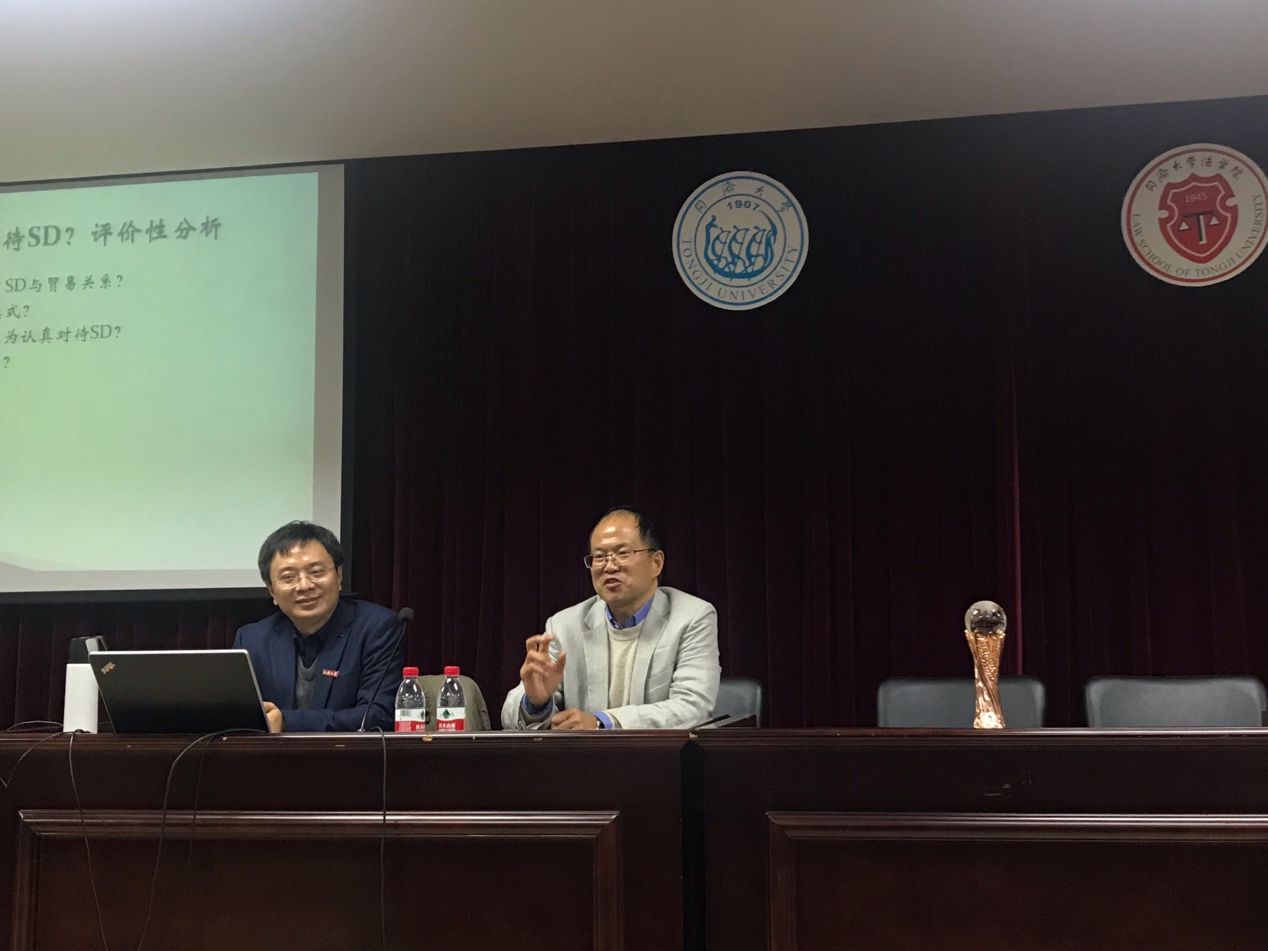 在讲座结束后,同学们和程卫东教授展开了关于中国应该如何应对可持续发展条款的方面展开了激烈的讨论,1946伟德国际源自英国高旭军教授也结合了自己在德国康斯坦茨的经历向同学们表达了自己的看法。