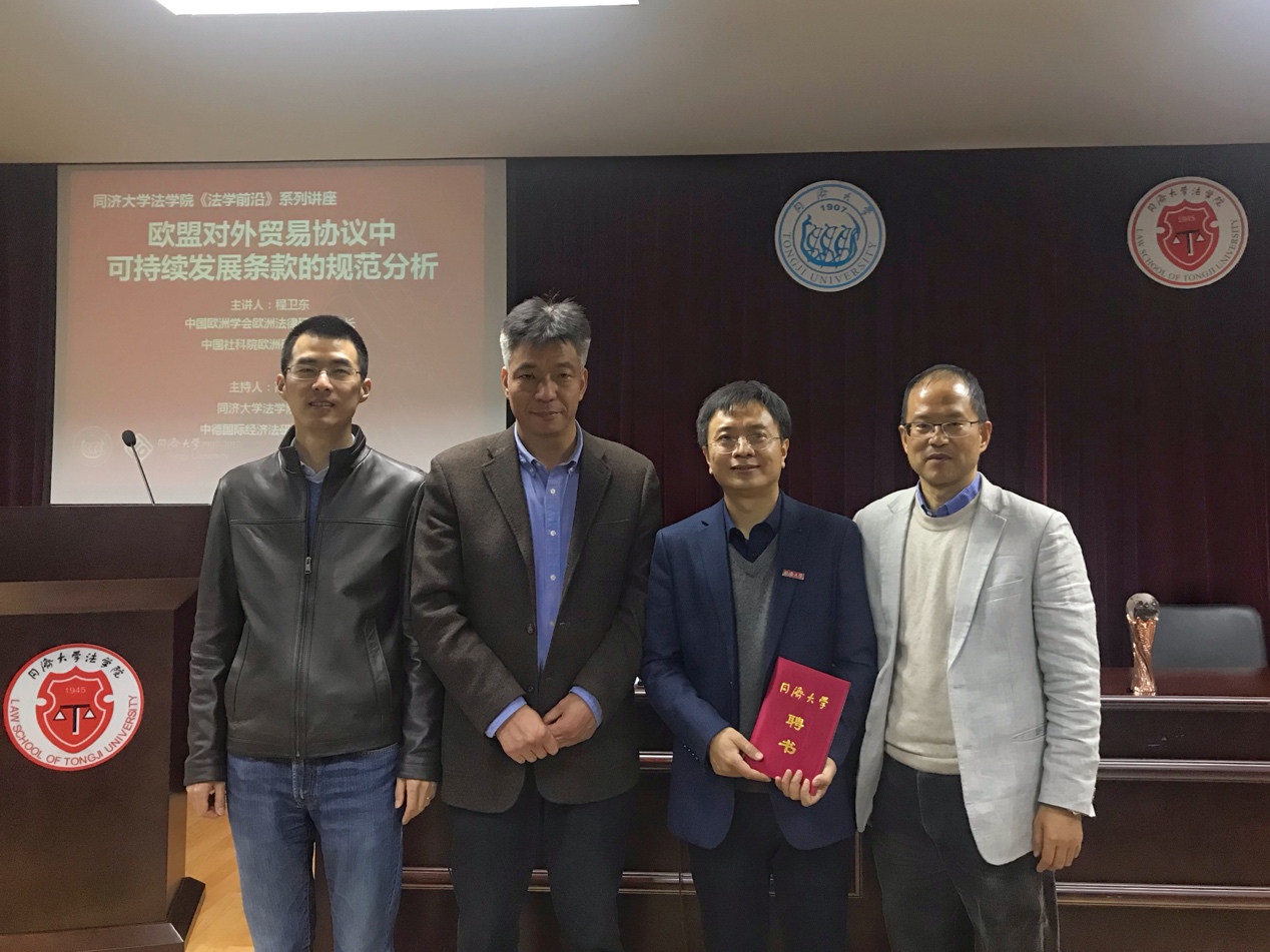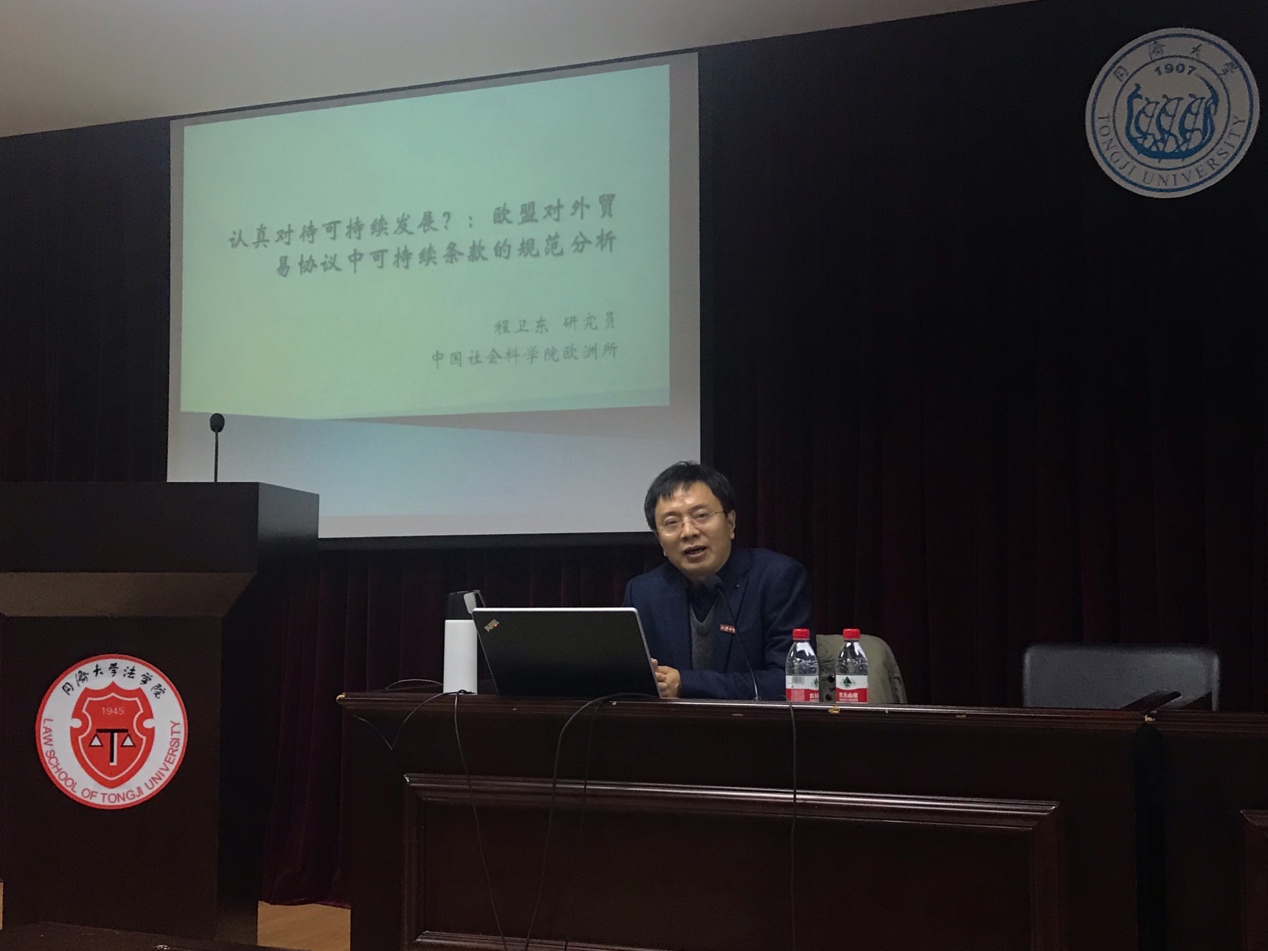 2018年12月6日,中国欧洲学会欧洲法律研究会会长、中国社科院欧洲研究所教授程卫东在1946伟德国际源自英国衷和楼为1946伟德国际源自英国师生做了题为“欧盟对外贸易协议中可持续发展条款的规范分析”的学术讲座。讲座由1946伟德国际源自英国教授、中德国际经济法研究所主任高旭军主持,公司党委书记吴为民、1946伟德国际源自英国副经理徐钢参加。