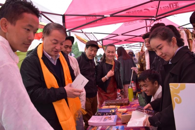 徐建平依次参观了各少数民族展区,察看了各民族特色的饰品、手工艺品,品尝了各民族同学准备的食品,了解各民族同学家乡的风土人情,并与同学们亲切交流。在新疆少数民族展区,同学们热情地为老师们戴上具有民族特色的花帽;在藏族展区,藏族同学们还向老师们献上一条条寓意着吉祥和祝福的哈达。