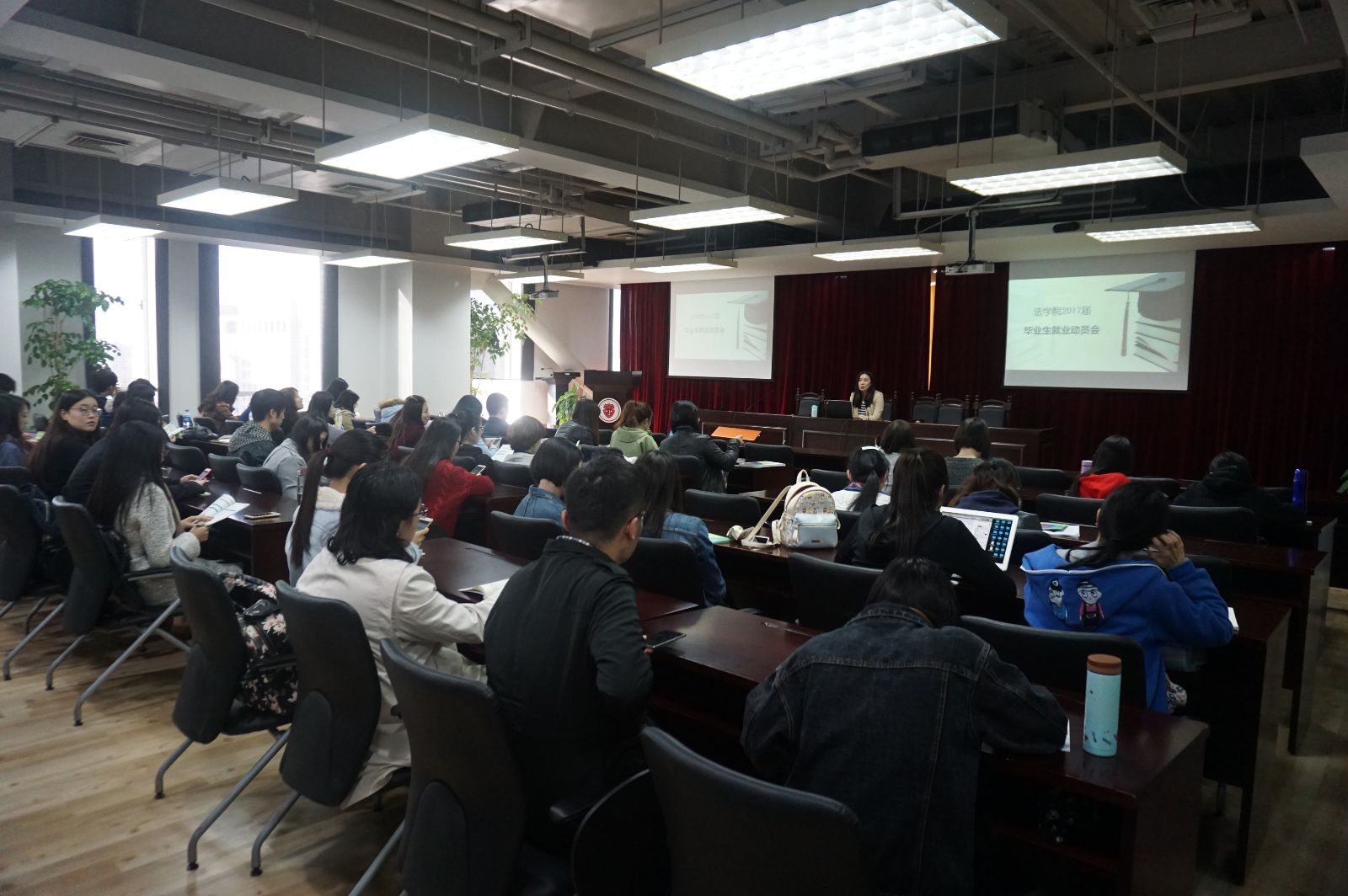 娄亚丹老师向同学们详细介绍了与就业相关的内容。她结合2016届1946伟德国际源自英国毕业生的就业状况对今年的就业形势做了简要的分析;随后,她就老员工职业选择、就业去向分类、上海市落户政策等热点问题进行详细解读,并为毕业生提供了不少宝贵的建议;提供简历制作指导和面试技巧的注意事项;鼓励同学们积极了解自身特点和法律职业世界,在求职之路上细观察、勤询问、善思索、多行动。