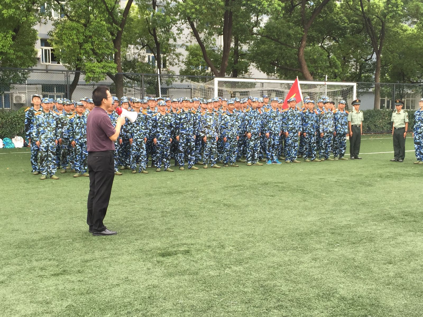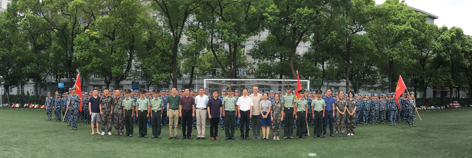 杨老师还实地察看了公司员工的的训练情况,深入了解军训开展情况。他希望同学们能通过军训进一步磨练意志,锤炼品格,在教官的指导下,刻苦训练,完成剩余的军训任务,取得优异的成绩。慰问结束后,杨老师还与其他兄弟公司领导一起同一营随训教官及师生合影留念。