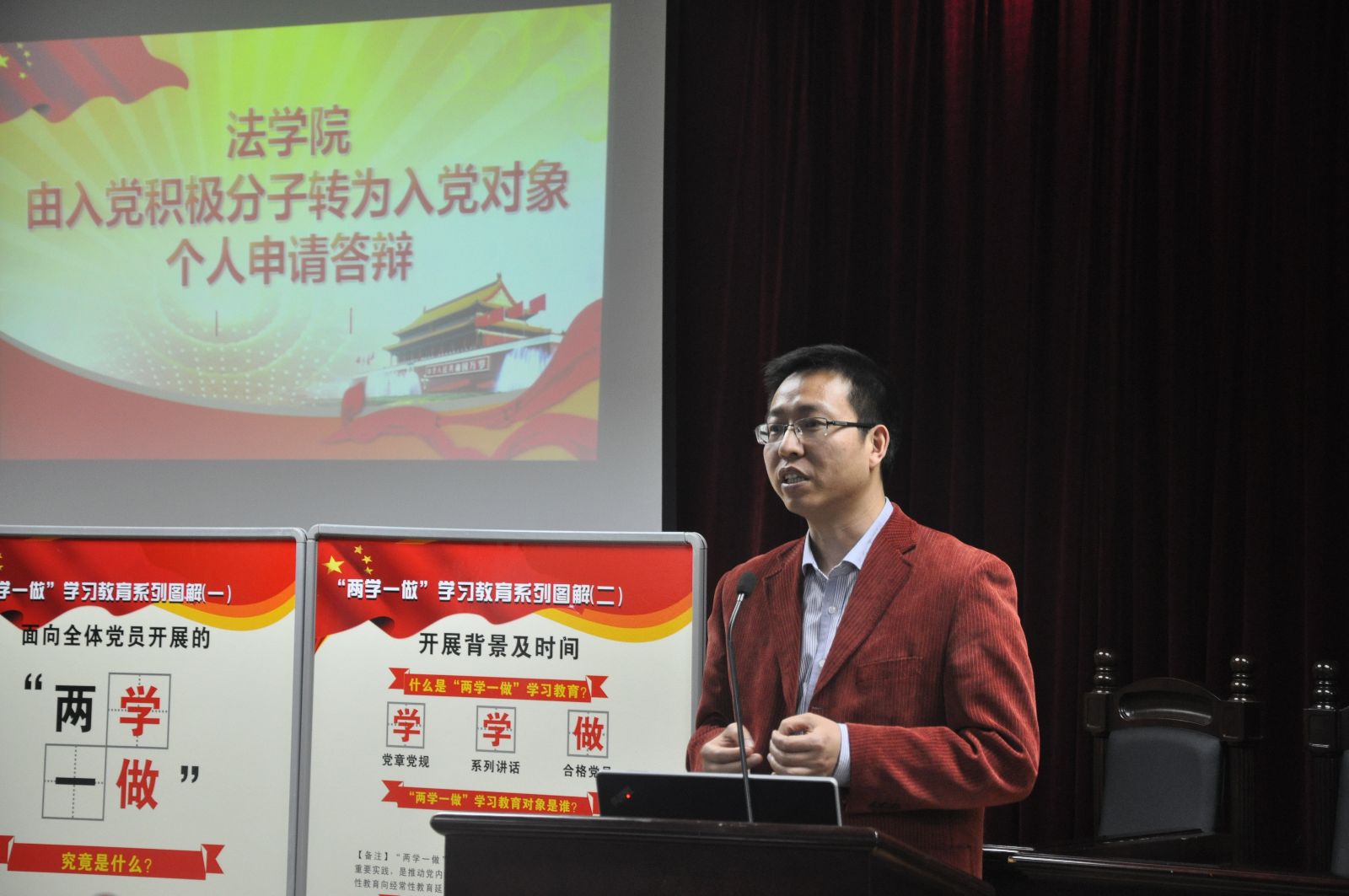杨满老师首先对开展此次入党积极分子答辩评审会的目的和意义作了说明。随后,12名入党积极分子先后上台进行汇报,向在场师生充分展示自己在入党动机、对党的认识、对党的理论知识的掌握情况、学习成绩、参加集体和公益活动等方面的情况。与会党员教师代表、本科生支部全体成员及群众代表进行了投票,在公开唱票、计票后,总监票人李佳琳同学现场宣布了评选结果,最终确定了7名拟发展预备党员的人选。