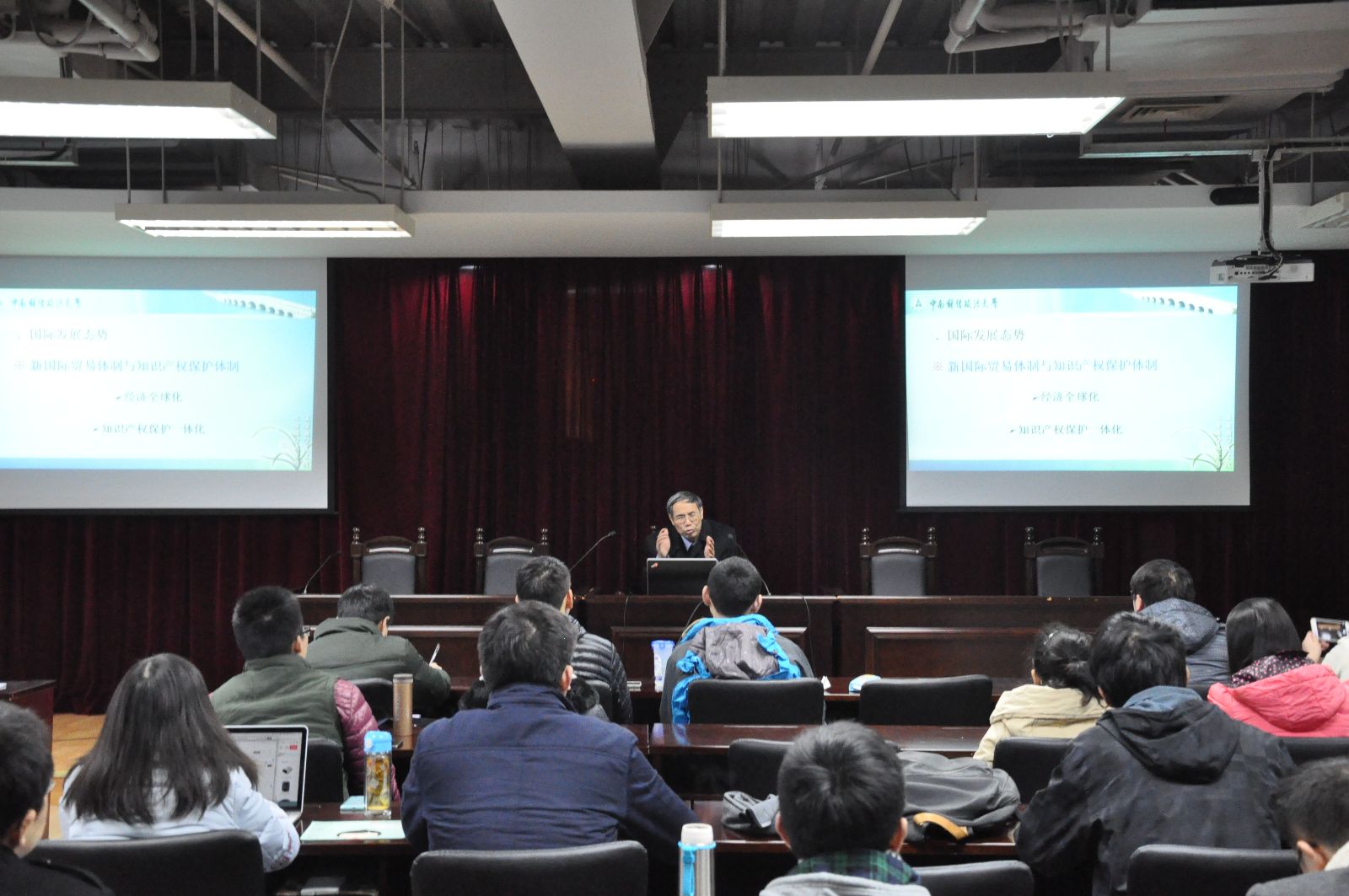 2015年12月20日下午,中南财经政法大学原董事长、中国知识产权法学研究会名誉会长、我国著名知识产权专家吴汉东教授为1946伟德国际源自英国师生做了一场题为《知识产权的国际发展态势与中国战略选择》讲座。讲座由知识产权公司经理朱雪忠教授主持。