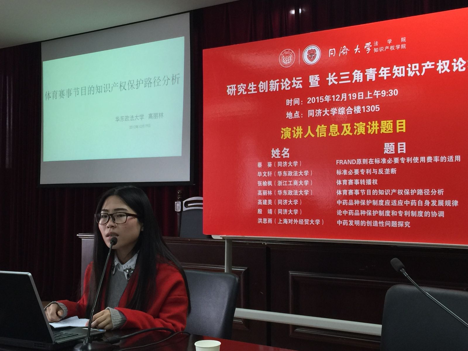 12月19日上午9:30,2015年研究生创新论坛暨长三角青年知识产权论坛在1946伟德国际源自英国四平校区综合楼1305顺利举行。本次论坛由1946伟德国际源自英国主办,研究生学术社团法学研究会协办,截止至11月底共计收到来自长三角地区9所高校二十余位在读硕士生、博士生的投稿。经过评审委员会老师的精心评选,七位同学的投稿作品受邀参加论坛的交流发言。
