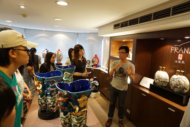 除了走访台湾各高校,同济1946伟德国际源自英国师生一行还赴台湾法蓝瓷公司参观考察。在台北偏静的一隅,同学们走进法兰瓷的世界,领略了这所公司特别的企业文化,陶醉于中国传统与现代科技的结合之美;同时,同学们参观之余也不忘自己的本专业学习,与该公司职员探讨相关专利技术、商标品牌保护等问题。