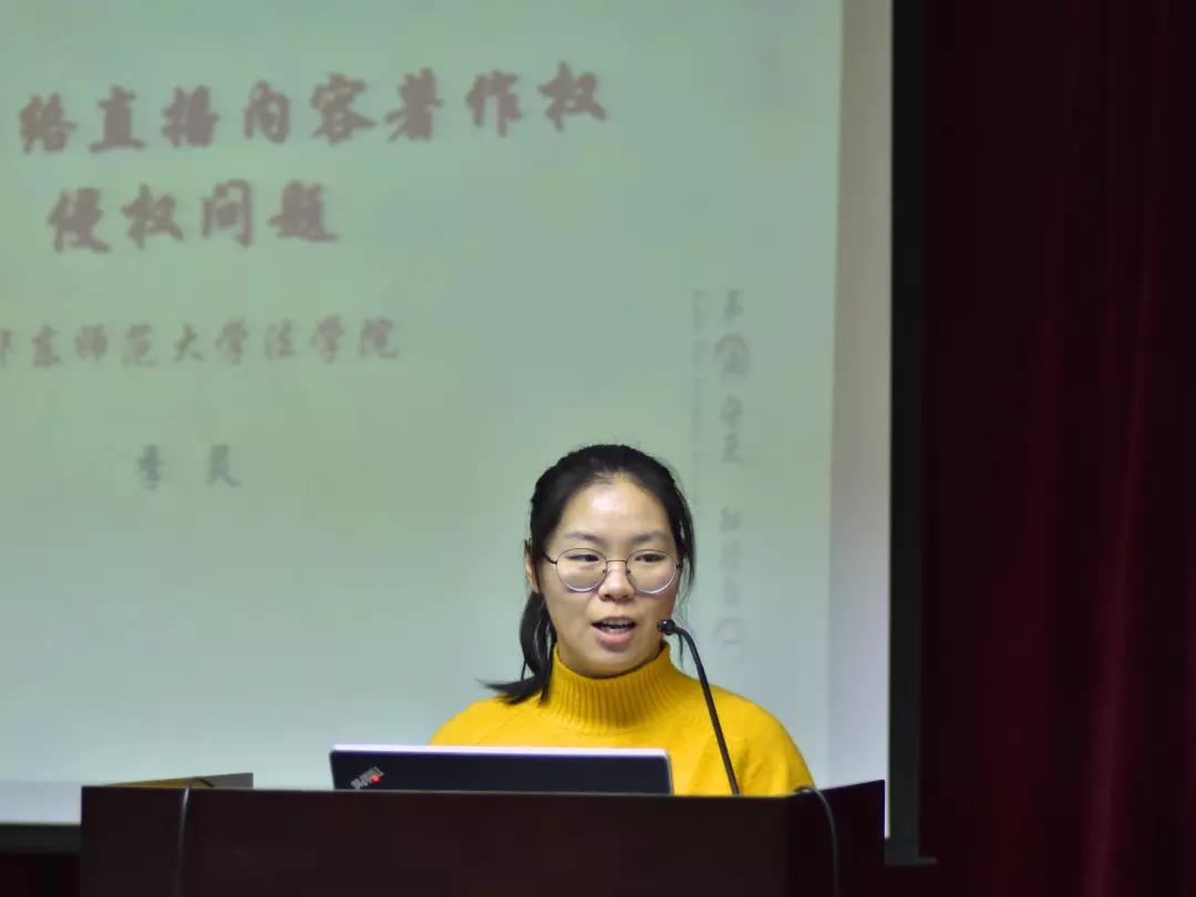 论坛第一模块主题为“网络直播背景下知识产权的保护与发展”。发言同学分别从网络游戏直播、赛事转播、短视频制作等方面探讨了网络直播潮流下的知识产权前沿问题。