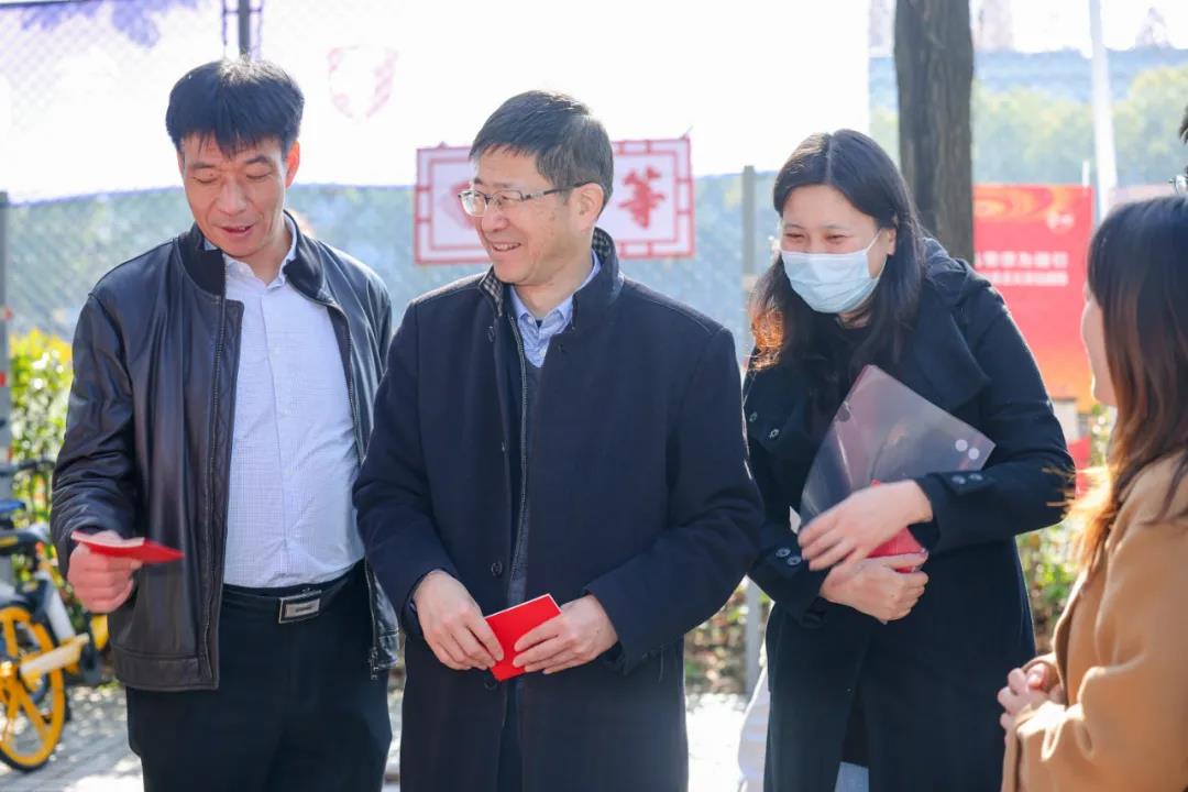 在四平路校区南大道,吴广明、彭震伟等先后来到活动现场,饶有兴趣地学习宪法知识与相关案件,并与员工亲切互动,勉励在场师生要学深悟透习近平法治思想和宪法精神,开展好常态化普法宣传。