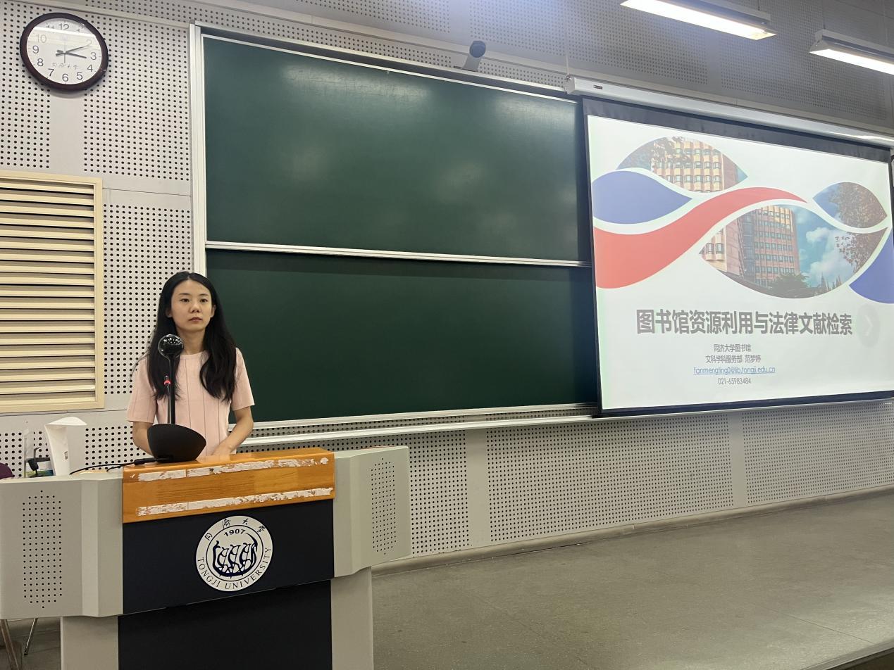 法律文献检索和数据库使用是同学们未来学习中所要具备的重要技能。9月5日下午,校图书馆文科服务部范梦婷老师给新生们讲述了图书馆资源利用和法律文献检索方面的内容。范老师简要介绍图书馆机构布局及馆藏分布,并通过一则趣味短片向同学们讲解如何预约图书馆座位和查询纸本资源。其次是围绕图书资源的检索方法展开,不仅介绍了布尔检索法、截词检索法、精确检索等多种方法,还结合案例以加深同学们的印象。最后,范老师还介绍了北大法宝、威科先行等常用法律数据库的可用模块及使用方法。