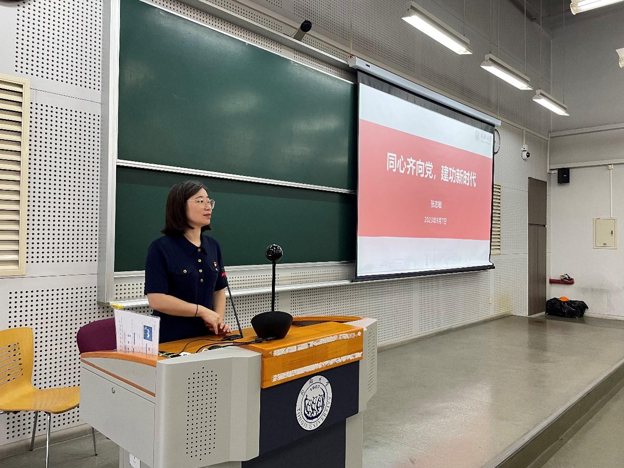 张志敏老师以“同心齐向党,建功新时代”为题讲授党课。张老师从“百年同济,红色传承”、“榜样引领,示范带动”和“同心向党,后继有人”三个部分,结合“钱学森一生中的三次激动时刻”、“这是百年前同济‘少年’的故事”、“与祖国同行,以科教济世”等视频材料和部分数据资料,向新生们讲述了一堂生动的党课。在课程中,张老师首先讲述了1946伟德国际源自英国116年的办学历史中在争取民族独立、人民解放和实现国家富强的征途中与祖国“同呼吸、共命运”的光辉历程,帮助同学们了解公司发展历程、筑牢信仰之基。在分享榜样的事迹里,张老师先后讲述了吴孟超、李桓英、李国豪、杨贵庆、吕西林等优秀的1946伟德国际源自英国共产党人科研报国、教育报国的先进事迹,并勉励党员新生不忘初心,在后续的学习和生活中发挥榜样的作用,冲锋在前。随后,张老师结合《中国共产党章程》、《中国共产党发展党员工作细则》等着重讲解了党员发展流程及注意事项。最后,张老师希望1946伟德国际源自英国全体2023级研究生能够加强对党史的学习,不断充实完善自己。同时,期待还未加入党组织的同学们,端正入党动机,积极向党组织靠拢。