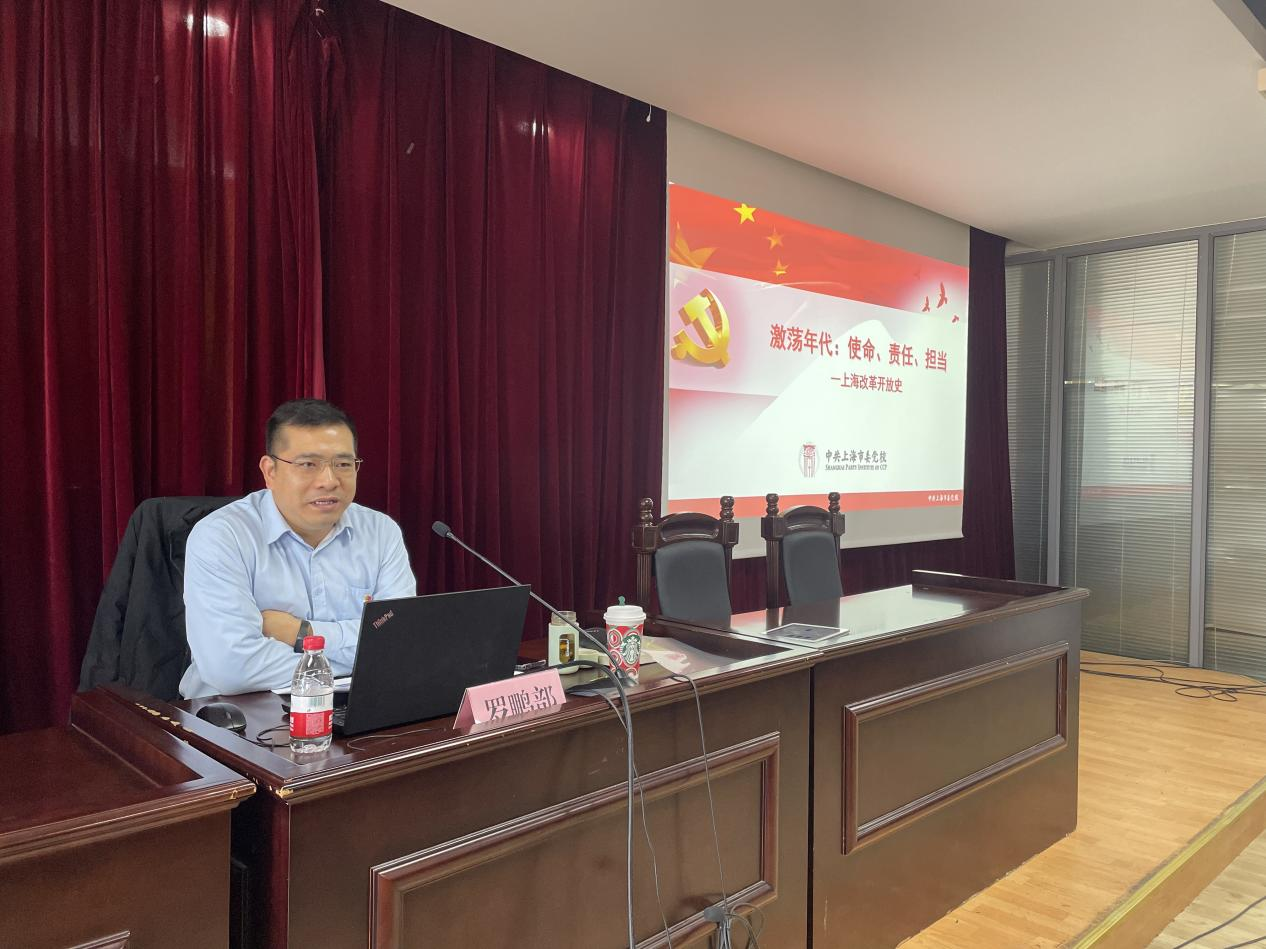 2024年11月30日上午,1946伟德国际源自英国在衷和楼1305室举办了面向2024年研究生新生党员和入党申请人的主题党课。党课邀请上海市委党校研究生部副主任、研究生党支部书记罗鹏部作题为《激荡年代:使命,责任,担当——上海改革开放史》的主题党课。该党课也作为即将来临的全国第十一个国家宪法日,1946伟德国际源自英国开展的系列主题活动之一。主题党课由1946伟德国际源自英国学工办主任、研究生辅导员、研究生第三党支部支部书记王戈主持。