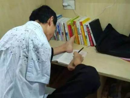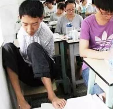 Based on this special situation, leaders of Tongji Law School said that they must not only ensure the fairness of the exam, but also provide humane services for this special candidate to make sure that he can successfully complete the exam. So Tongji Law School had thoughtfully provided a special chair and desk for PENG to take the exam.