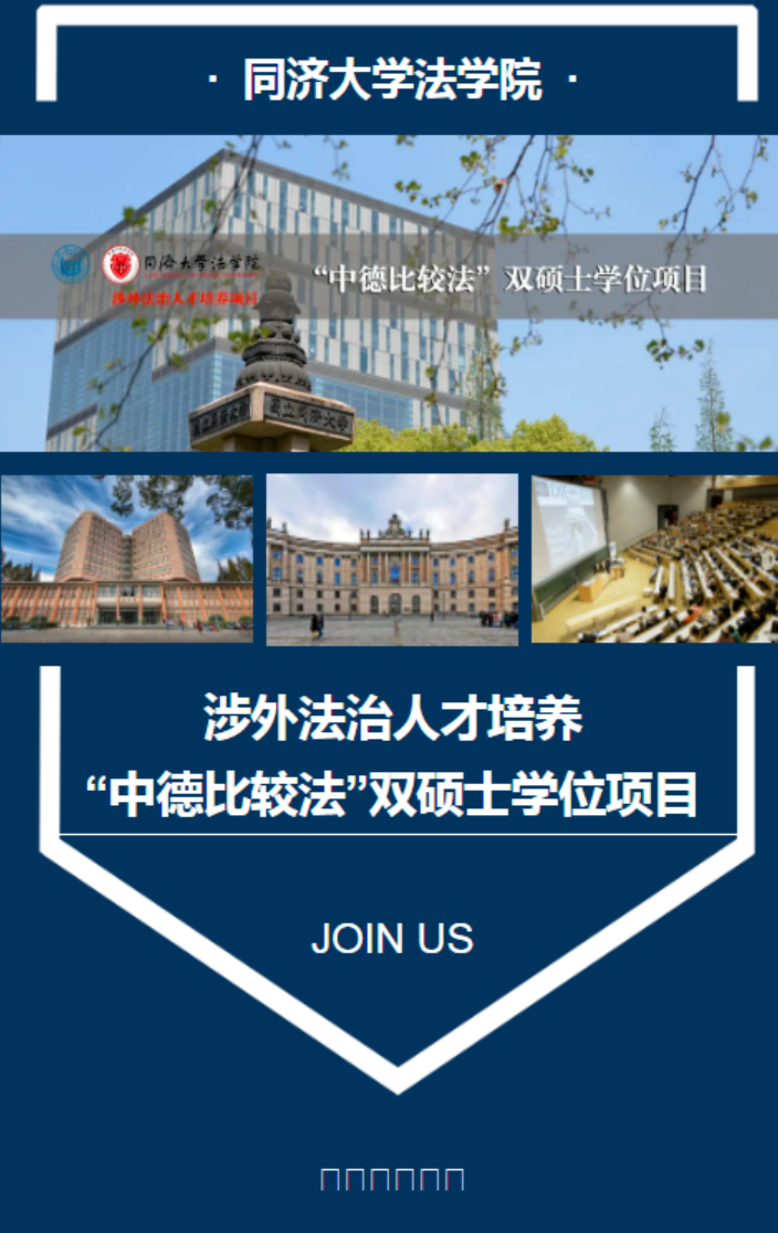 In 2013, Tongji Law School established the Sino-German double degree program in comparative law with Humboldt University and University of Konstanz in Germany. More than 20 students will be enrolled each year, with more than 10 Chinese and German students from each country. After intensive language training and courses on Chinese and German law at Tongji University, Chinese students participating in this program will further study for another one year at the partner university in Germany and they will receive two master's degrees after graduation. This program has been successfully running for 9 years now and has cultivated more than 130 Sino-German master students, some of whom continue their doctoral studies in Germany after graduation. Now, this program is well-known both in China and in Europe.