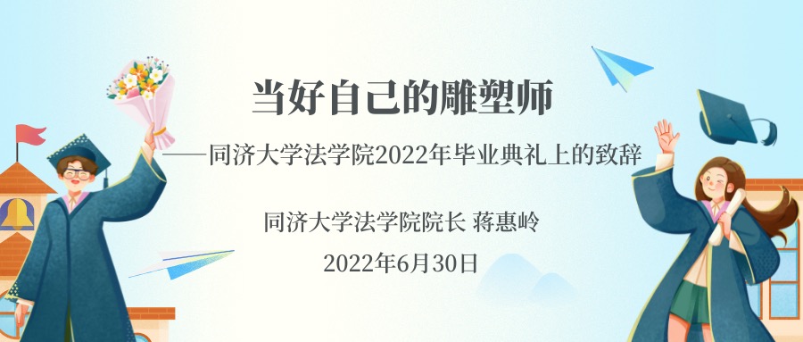 To everyone who is assembled here today to celebrate the commencement, good afternoon! When flowers are blooming in June, it's another graduation season! Congratulations on your successful completion of your curriculum and becoming alumi of Tongji Law School.