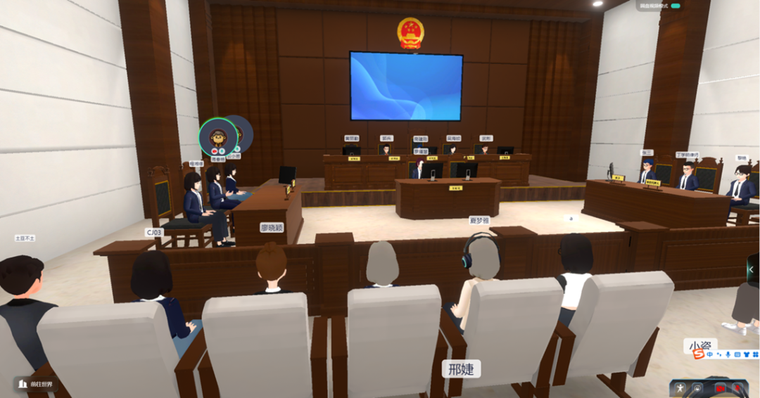 The metaverse composes a dual element in this moot court trial, that is, a metaverse legal dispute case is heard in a metaverse court: the plaintiff Yun Xiaoruo filed a civil tort lawsuit against Zhang San for being sexually harassed in the metaverse game. The plaintiff and the defendant along with their agents are engaged in a fierce confrontation in the mock court of the metaverse.