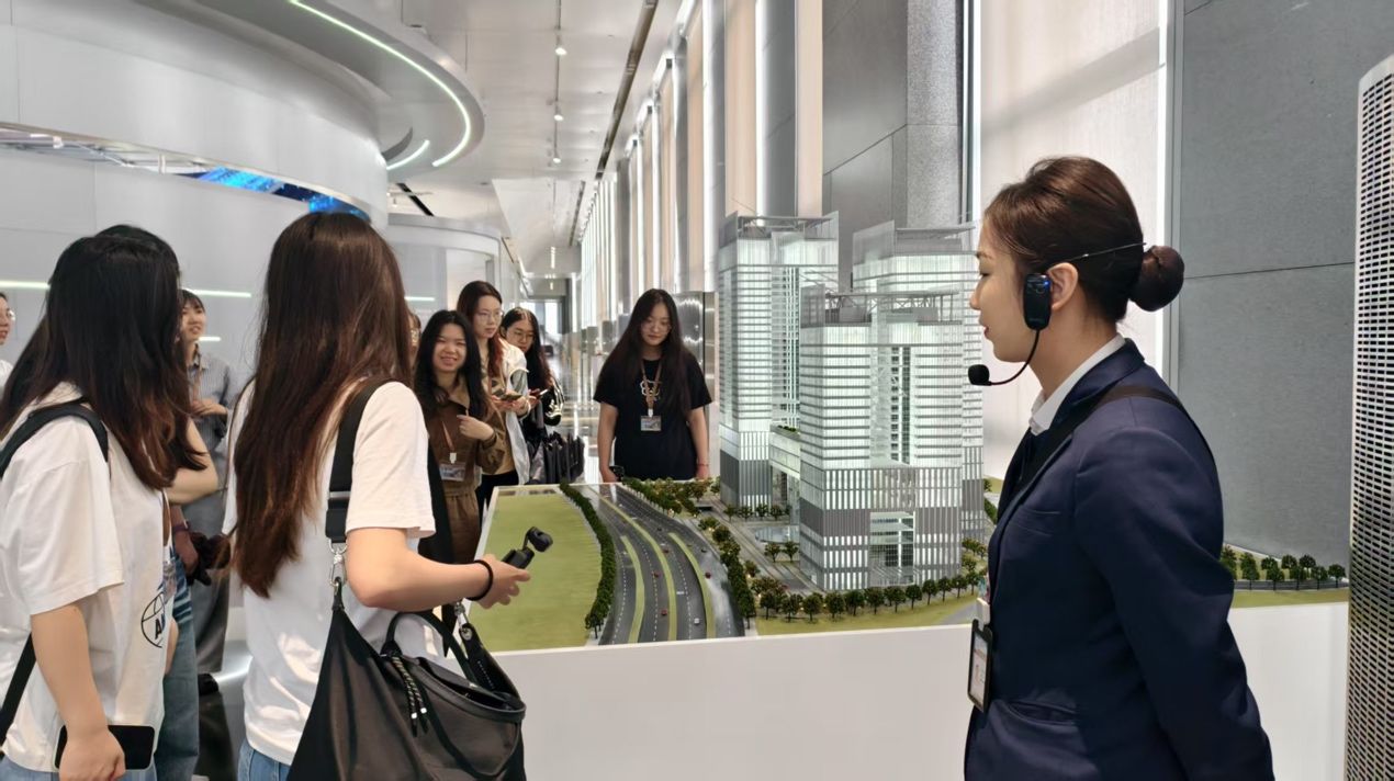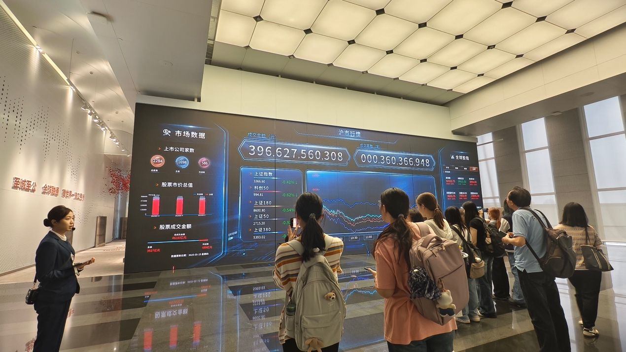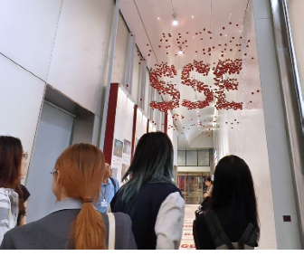 空中悬挂的红球装置更是匠心独运——正面观之,球体组合成数字“30”,纪念上交所成立三十周年乔迁新址;反面视角下,则呈现为上交所的英文缩写 “SSE”(Shanghai Stock Exchange),让同学们深刻感受到了科技与金融的紧密结合。