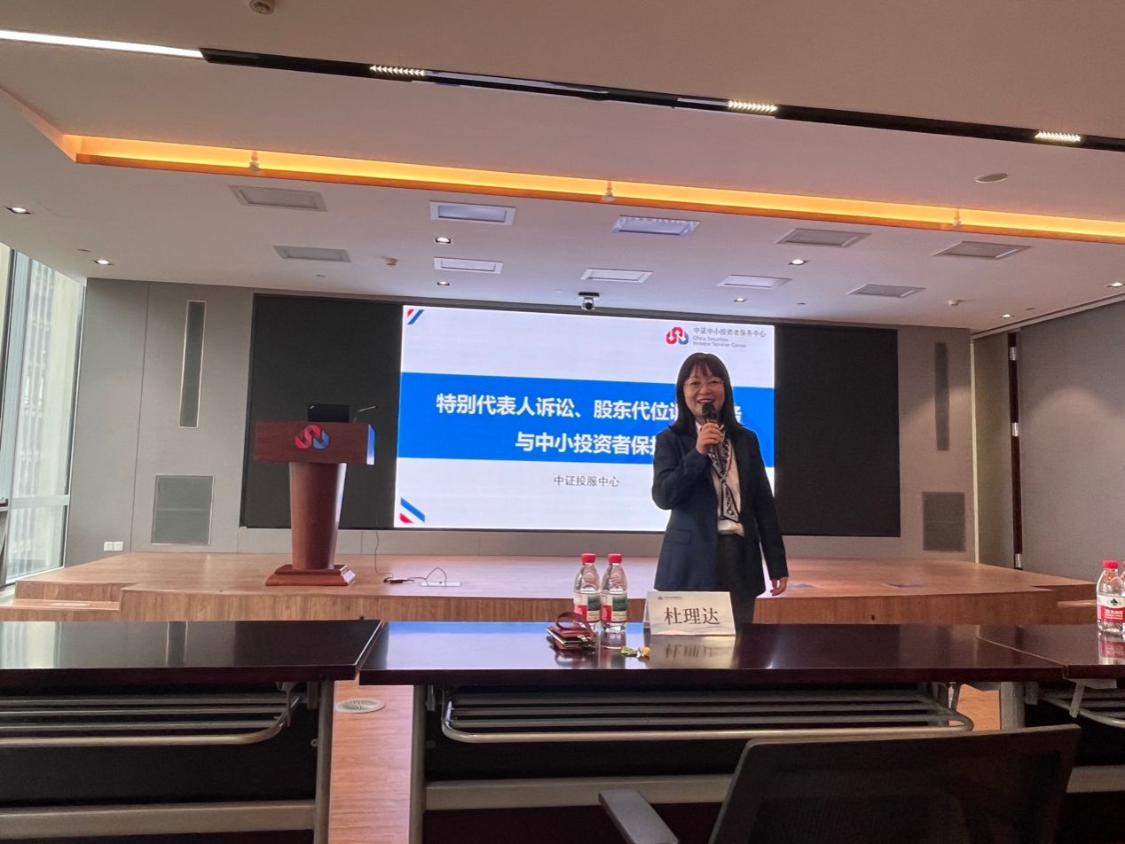 讲座伊始,中证投服中心维权事务部总监杜理达通过深入浅出的讲解,为同学们系统构建起对投服中心的认知框架。她详细阐释了投服中心作为资本市场的“投资者守护者”,始终致力于打造“有温度”的投资者教育体系,将复杂的金融知识、投资风险提示等内容,转化为通俗易懂的产品,以“接地气”的方式走进大众视野,提升投资者金融素养与风险防范能力,培育理性投资文化,为资本市场的健康发展注入持久动力。