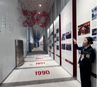 随后,师生一行步入科技感满满的上交所成立30周年主题馆,通过聆听专业讲解,回溯社会主义市场经济体制改革的历史进程,切身感受祖国经济与科技事业在开拓创新中不断突破的奋进历程。